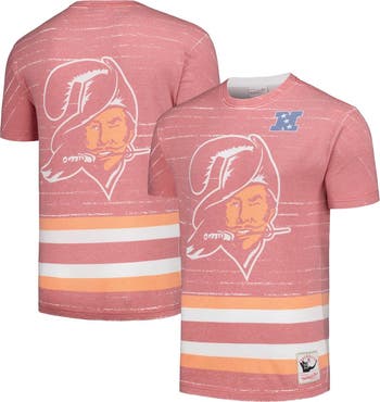 The Mitchell & Ness Red Tampa Bay Buccaneers Jumbotron 3.0 T-shirt is a must-have for any true Tampa Bay Buccaneers fan. With sublimated graphics and a woven jock tag at the hem, this shirt proudly displays your unwavering support for the Buccaneers. Whether you're cheering them on at the stadium or just showing your team spirit around town, this shirt is the perfect way to represent your favorite NFL team.