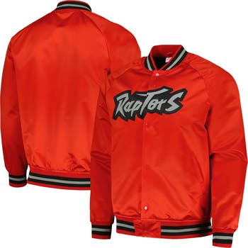 Throwback to the past with this comfortable Mitchell & Ness Wordmark full-snap jacket dedicated to the Toronto Raptors. Featuring raglan sleeves and instantly recognizable Toronto Raptors graphics and colors, this stunning piece of gear won't sit in your closet for long. As soon as cooler weather arrives, you'll be sporting this snazzy jacket.