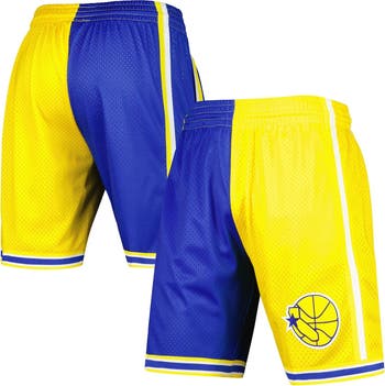 Men's Mitchell & Ness Royal/Gold Golden State Warriors Hardwood Classics 1995 Split Swingman Shorts
