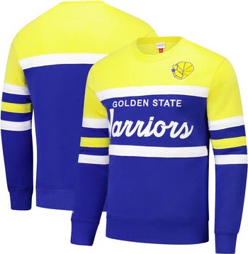 Channel the winning legacy of the Golden State Warriors with this Mitchell & Ness Hardwood Classics Vintage Logo Head Coach Pullover Sweatshirt. This fleece-lined sweatshirt boasts a vintage feel and features a bold embroidered fabric applique wordmark across the chest. Sewn-on stripe accents and embroidered team details on the chest add an extra layer of Golden State Warriors pride to this already-standout piece.