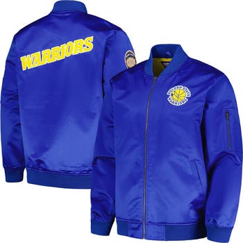 Men's Mitchell & Ness Royal Golden State Warriors Hardwood Classics Vintage Logo Full-Zip Bomber Jacket