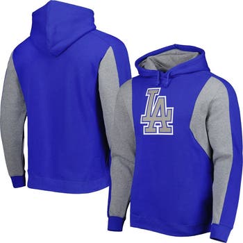 Men's Mitchell & Ness Royal/Heather Gray Los Angeles Dodgers Colorblocked Fleece Pullover Hoodie