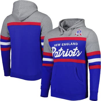 Men's Mitchell & Ness Royal/Heathered Gray New England Patriots Head Coach Pullover Hoodie