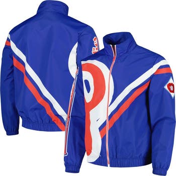 Men's Mitchell & Ness Royal Philadelphia Phillies Exploded Logo Warm Up Full-Zip Jacket