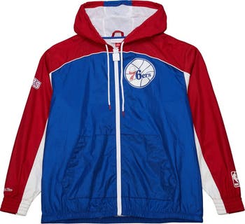 Men's Mitchell & Ness Royal/Red Philadelphia 76ers Hardwood Classics Big Shot Premium Full-Zip Windbreaker Jacket