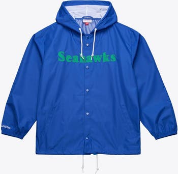Men's Mitchell & Ness Royal Seattle Seahawks Coaches Full-Snap Hooded Windbreaker Jacket