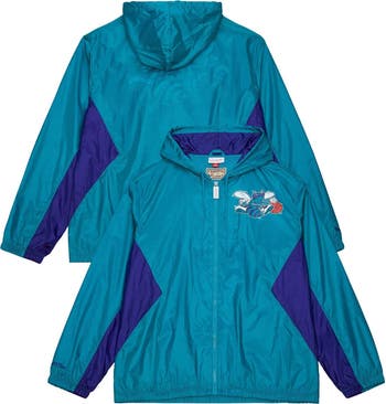 Men's Mitchell & Ness Teal Charlotte Hornets Playmaker Full-Zip Hooded Windbreaker Jacket