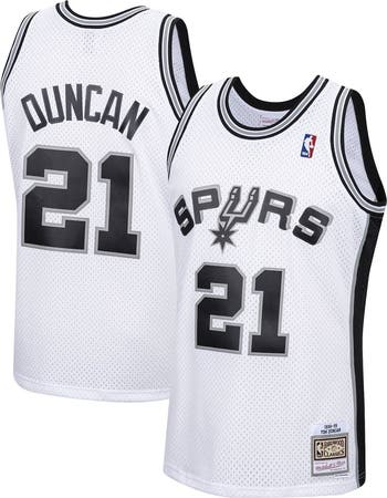 Rep one of your all-time favorite pros with this Tim Duncan Swingman jersey from Mitchell & Ness. The throwback San Antonio Spurs details are inspired by the franchise's iconic look of days gone by. Every stitch on this jersey is tailored to exact team specifications, delivering outstanding quality and a premium feel.