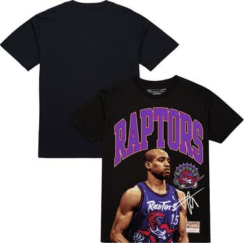 Celebrate the lasting legacy of an NBA icon with this Vince Carter Hardwood Classics Player Arch T-Shirt by Mitchell & Ness. Its printed graphics highlight Toronto Raptors details, along with the player in action and his distinct signature. This tee is finished with a classic crew neck cut and crafted from soft cotton fabric for premium comfort when reflecting on Toronto Raptors history.