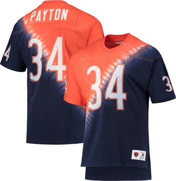 Men's Mitchell & Ness Walter Payton Orange/Navy Chicago Bears Retired Player Name & Number Diagonal Tie-Dye V-Neck T-Shirt