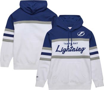 Men's Mitchell & Ness White/Blue Tampa Bay Lightning Head Coach Pullover Hoodie