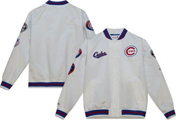 Men's Mitchell & Ness White Chicago Cubs City Collection Satin Full-Snap Varsity Jacket