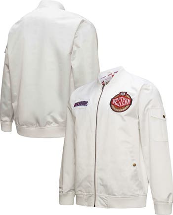 Men's Mitchell & Ness White Golden State Warriors Hardwood Classics Nights Team Leader Satin Full-Zip Jacket