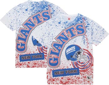 The Men's Mitchell & Ness White New York Giants Big & Tall Allover Print T-Shirt is the ultimate way to show your unwavering support for the New York Giants. This eye-catching tee features sublimated graphics that showcase your team pride from every angle. Made from soft cotton, it provides all-day comfort, whether you're cheering from the stands or representing the Giants off the field.