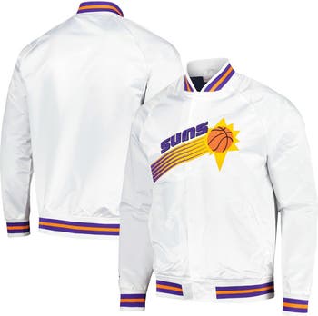 Throwback to the past with this comfortable Mitchell & Ness Wordmark full-snap jacket dedicated to the Phoenix Suns. Featuring raglan sleeves and instantly recognizable Phoenix Suns graphics and colors, this stunning piece of gear won't sit in your closet for long. As soon as cooler weather arrives, you'll be sporting this snazzy jacket.