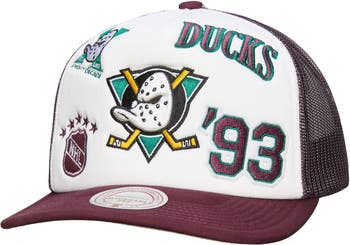 Men's Mitchell & Ness White/Purple Anaheim Ducks Gridlock Trucker Adjustable Hat