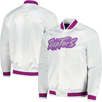 Men's Mitchell & Ness White Toronto Raptors Hardwood Classics Throwback Wordmark Raglan Full-Snap Jacket