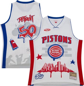 Men's Mitchell & Ness x Tats Cru White Detroit Pistons Hardwood Classics Fashion Jersey
