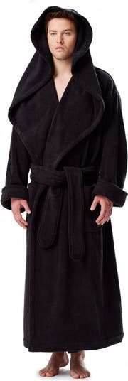 Men’s Monk Robe Style Full Length Hooded Turkish Terry Cotton Bathrobe. Unique in design and lavishly luxurious, this ankle long Monk Style hooded bathrobe is made of 100% Terry Cotton providing exceptional absorbency and warmth, making it a true luxury bathrobe. Featuring a monk robe inspired untraditional large hood, two patch pockets, ankle-length coverage, and a wide self-fabric belt with dual loops, it ensures a secure and comfortable fit. The long sleeves include adjustable turn-back cuffs for added versatility. A must-have for those seeking comfort, style, and authentic craftsmanship.