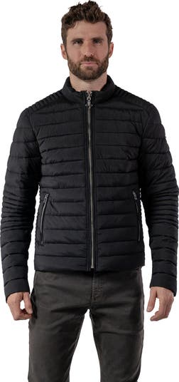 Men’s moto-style zip-up jacket. Canadian-designed premium outerwear. Sleek, structured, and cruelty-free.