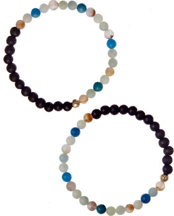 Take risks and strengthen your confidence with this pair of stretch bracelets showcasing a curated mix of crystals, polished stones and 14k-gold–filled beads.