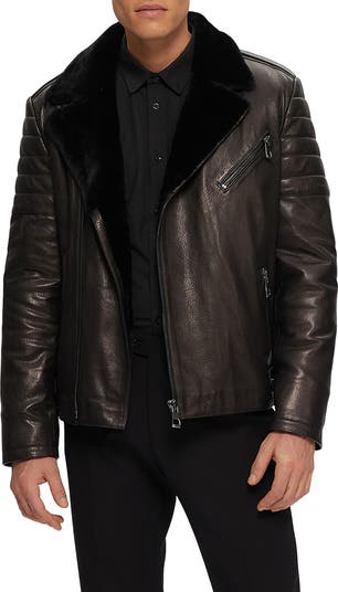 Stay warm in style with the Men's Fabric Jacket featuring a Genuine Shearling Lining. This jacket offers both comfort and a fashionable touch for the colder seasons.