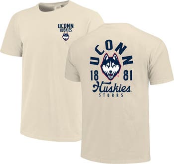 Rep your UConn Huskies in retro style with this Comfort Colors Mascot Overlay T-Shirt. Made from ultra-soft, pre-washed cotton, it offers a comfy, lived-in feel that's perfect for game day. The vintage team details printed on the front and back add a touch of UConn Huskies history to your look.