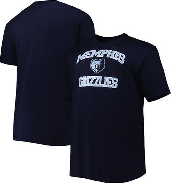 The Men's Navy Memphis Grizzlies Big & Tall Heart & Soul T-Shirt is the perfect way to show unwavering support for the Memphis Grizzlies. Crafted from soft cotton, this crew neck tee boasts screen-printed graphics proudly displaying the Grizzlies logo and team name. Whether cheering from the stands or relaxing, this shirt declares your true Grizzlies fandom to all.