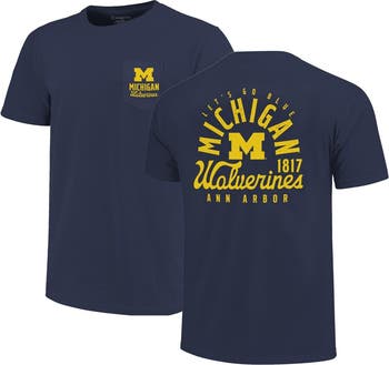 Show off your unwavering Michigan Wolverines pride with this Mascot Overlay Essential Pocket T-Shirt. The soft cotton fabric ensures all-day comfort, making it perfect for game days or casual wear. Featuring team graphics across the back, this tee boldly displays your Michigan Wolverines spirit, while the left chest pocket adds a touch of functionality.