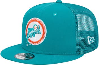 Cheer on your Miami Dolphins with this Main Trucker 9FIFTY Snapback Hat from New Era. This hat features a classic snapback design with a high crown and flat bill for a timeless and comfortable fit. The embroidered graphics with raised details add a touch of dimension and texture, showcasing your Miami Dolphins pride with style.