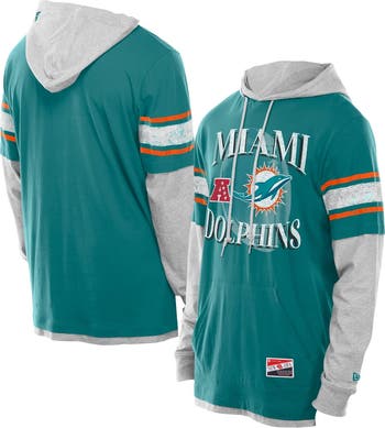 Men's New Era Aqua Miami Dolphins Twofer Layered Long Sleeve Hoodie T-Shirt