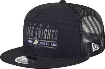 Snap on this Army Black Knights New Era Split Panel 9FIFTY Trucker Hat and show which team is number one. This stylish snapback cap features a classic construction with mesh side and back panels for breathability, keeping you cool and comfortable at the game from start to finish. The distressed screen-print team graphics on the split front triple-panel adds a vintage vibe, showcasing your Army Black Knights pride for all to see.