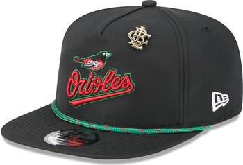 New Era partners with Big League Chew to bring Baltimore Orioles fans a fun new hat for game day.This Golfer Snapback Hat features a retro look with its pinched crown and flat visor, reminiscent of classic snapbacks from the '80s and '90s. The five-panel construction, complete with mid and rear eyelets, ensures breathability, while the rope embellishment at the visor and Big League Chew pin add a touch of vintage charm.
