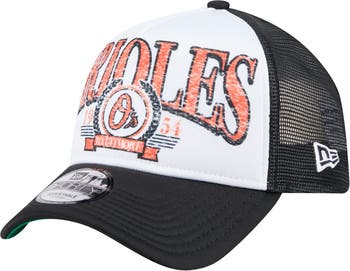 Add some vintage style to your Baltimore Orioles game-day look with this New Era Distressed 9FORTY A-Frame Adjustable Trucker Hat. This hat features distressed Baltimore Orioles graphics on the front, giving it a lived-in look that's perfect for any fan. With its solid front panel and breathable mesh mid and rear panels, this hat will keep you cool and comfortable all game long.
