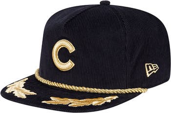 Show your Chicago Cubs pride in classic style with this New Era Corduroy Filigree Golfer Adjustable Hat. The corduroy fabric adds a touch of vintage flair, while the gold-tone graphics and metallic rope details bring a touch of sophistication. Featuring a semi-structured fit with a pinched crown and flat visor, this hat offers a retro look reminiscent of classic snapbacks from the '80s and '90s.