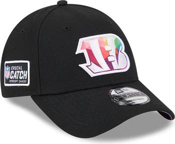 Intercept cancer with the 2023 NFL Crucial Catch Collection from New Era. In the spirit of various cancer ribbon colors, this 9FORTY Adjustable Hat features an embroidered Cincinnati Bengals logo at the front panels and a patterned undervisor. It also consists of the league's Crucial Catch logo at the right-wear side on a woven label and a snapback closure at the rear. The NFL does not profit from the sale of Crucial Catch products. Charitable contributions are awarded by the NFL Foundation to the American Cancer Society. For more information, please visit www.NFL.com/CrucialCatch.