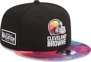 Intercept cancer with the 2023 NFL Crucial Catch Collection from New Era. In the spirit of various cancer ribbon colors, this 9FIFTY Snapback Hat features an embroidered Cleveland Browns logo at the front panels with a patterned visor. It also consists of the league's Crucial Catch logo displayed at the right-wear side on a woven label and a snapback closure at the rear. The NFL does not profit from the sale of Crucial Catch products. Charitable contributions are awarded by the NFL Foundation to the American Cancer Society. For more information, please visit www.NFL.com/CrucialCatch.