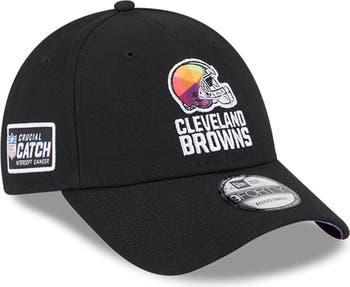 Intercept cancer with the 2023 NFL Crucial Catch Collection from New Era. In the spirit of various cancer ribbon colors, this 9FORTY Adjustable Hat features an embroidered Cleveland Browns logo at the front panels and a patterned undervisor. It also consists of the league's Crucial Catch logo at the right-wear side on a woven label and a snapback closure at the rear. The NFL does not profit from the sale of Crucial Catch products. Charitable contributions are awarded by the NFL Foundation to the American Cancer Society. For more information, please visit www.NFL.com/CrucialCatch.