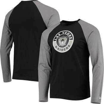 Men's New Era Black/Gray Las Vegas Raiders League Raglan Throwback Long Sleeve T-Shirt