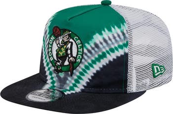 Rock this New Era Throwback Dye Golfer Snapback Hat to show off your Boston Celtics team pride. This cap features a unique and colorful sublimated dye pattern on the front panel and visor. The Golfer silhouette offers a retro look and shape with a semi-structured fit, pinched crown and flat visor reminiscent of classic '80s and '90s snapbacks.