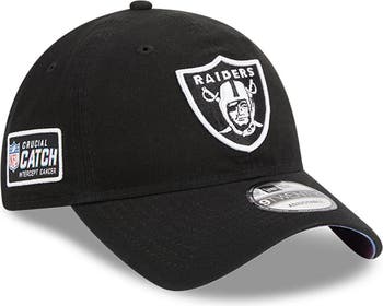 Intercept cancer with the 2023 NFL Crucial Catch Collection from New Era. In the spirit of various cancer ribbon colors, this 9TWENTY Adjustable Hat features an embroidered Las Vegas Raiders logo at the front panels and a patterned undervisor. It also consists of the league's Crucial Catch logo at the right-wear side on a woven label and an adjustable closure at the rear. The NFL does not profit from the sale of Crucial Catch products. Charitable contributions are awarded by the NFL Foundation to the American Cancer Society. For more information, please visit www.NFL.com/CrucialCatch.