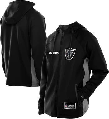 Stay warm while repping your favorite NFL franchise with this Las Vegas Raiders Combine Authentic Raglan Scuba Full-Zip Hoodie from New Era. With raglan sleeves and a drawstring hood design, this midweight jacket provides effortless mobility and a personalized fit that keeps you warm without getting in your way. The team logo and wordmark on the front proudly display your allegiance to the Las Vegas Raiders, making this a must-have for any dedicated fan.