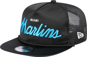 Add vintage flair to your Miami Marlins game day wardrobe with this Retro Satin Script Golfer Adjustable Hat from New Era. With its solid front panels and mesh mid and rear panels, this hat provides a comfortable blend of structure and breathability. The embroidered team wordmark pops with retro-inspired styling, making this Miami Marlins cap a true standout piece.