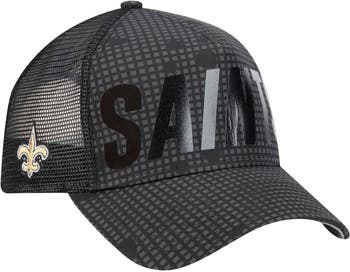 Men's New Era Black New Orleans Saints Midnight Ink Tonal Text A-Frame Trucker 9FORTY Adjustable Hat