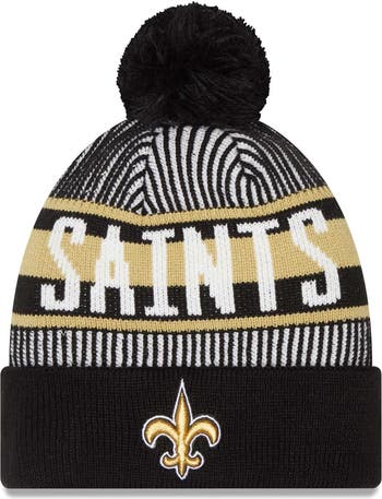 Men's New Era Black New Orleans Saints Striped Cuffed Knit Hat with Pom