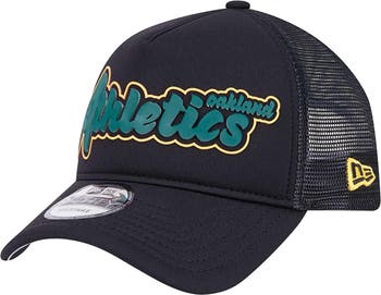Rock a vintage look while repping the Oakland Athletics with this New Era Retro Bold A-Frame Trucker 9FORTY Adjustable Hat. This hat features a bold, heat-sealed rubber applique of the team's script on the front panel, making a statement whether you're at a Oakland Athletics game or out on the town. With its unique A-Frame design merging the front two crown panels, this hat creates a high-profile, pinched shape for an unmistakable retro look.