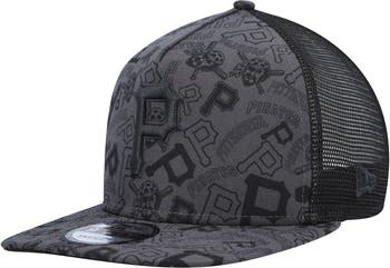 Men's New Era Black Pittsburgh Pirates Repeat A-Frame 9FIFTY Trucker Snapback Hat