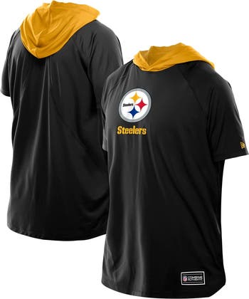 Gear up for your favorite time of year with this Pittsburgh Steelers Combine Authentic Hooded Raglan Short-Sleeve T-Shirt from New Era. This lightweight tee is designed with raglan sleeves, letting you move effortlessly during workouts or casual days around town, while the contrast-color hood adds some eye-catching spirit to your look. The authentic NFL Combine tag at the bottom left hem adds a touch of official team flair, making this a perfect choice for any enthusiastic fan.