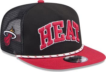 Stay shaded in classic style with this Miami Heat Throwback Team Arch snapback hat from New Era. It features a team wordmark across the front and logo on the side. The mesh panels and rope across the visor add dashing details to this Miami Heat hat.