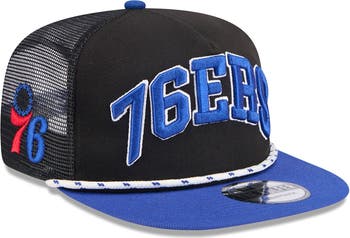 Men's New Era Black/Royal Philadelphia 76ers Throwback Team Arch Golfer Snapback Hat